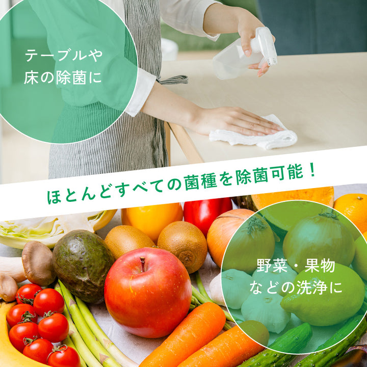 微酸性次亜塩素酸水の除菌・消臭液 次亜塩素酸水は一般にアルコールには効果の期待できない水まわりや、ノロウイルスなどに利用可能といわれてます。