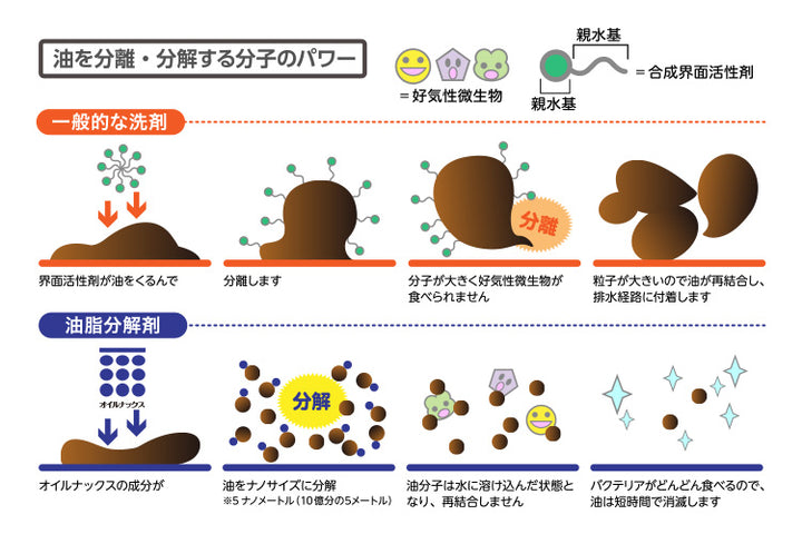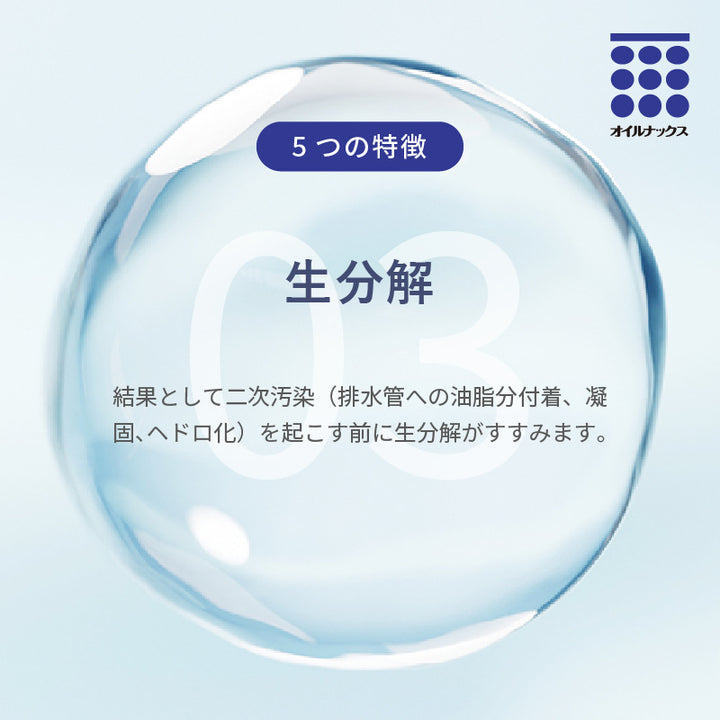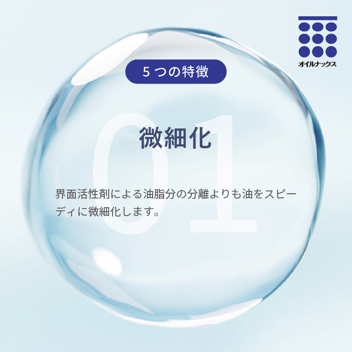 油汚れを落とすだけではなく、その原因となる油脂分を細かく分解し再結合させない油脂分解洗剤です。